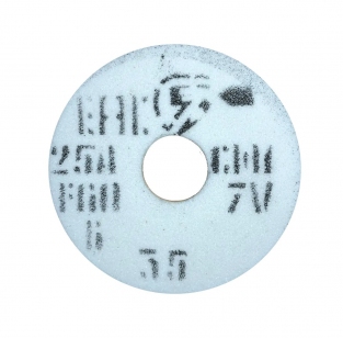 Шлифовальный круг выполнен из электрокорунд белый— марки: 25А. Получают из глинозёма, абразива высшего сорта (25А), он обладает высокой твердостью, прочностью, термостойкостью, высокой хрупкостью и высокой режущей способностью, он имеет незначительное число примесей и более однороден по составу. Он больше подходит для шлифшкурки и прочих изделий с абразивным покрытием, для изготовления инструмента, который применяется для обработки закалённых твёрдых сталей, также применяется для пескоструйного шлифования.