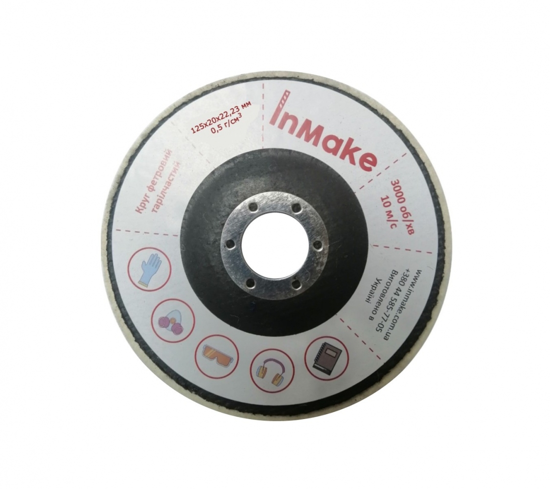 Фетровые круги торцевые предназначены для удержания полировочной пасты в месте обработки поверхности с использованием угловых шлифовальных машин. Круги применяются для финишного полирования изделий и предоставления им эстетического вида. Материалом обработки являются изделия из нержавеющих сталей, цветных и драгоценных металлов, лакокрасочных поверхностей, пластика, дерева, кожи и т.д.